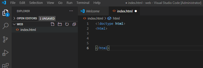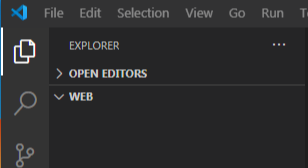 그다음 vscode를 실행시켜 file을 클릭하고 open folder를 클릭하아여 방금 전에 만든 web폴더를 엽니다.